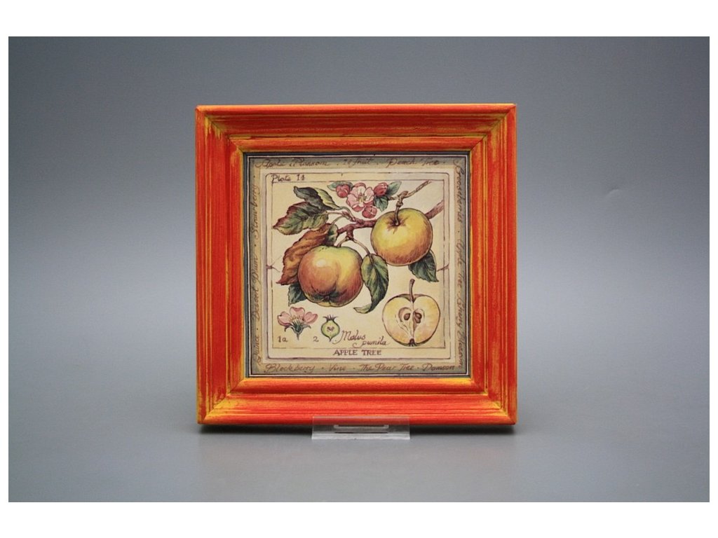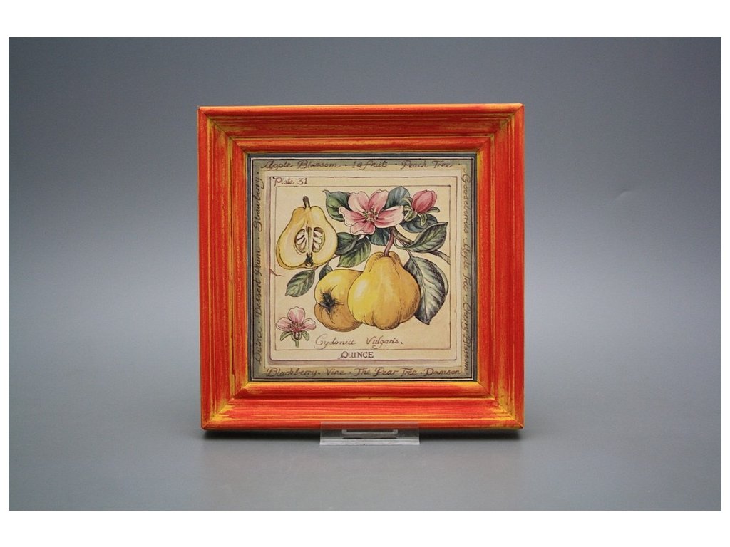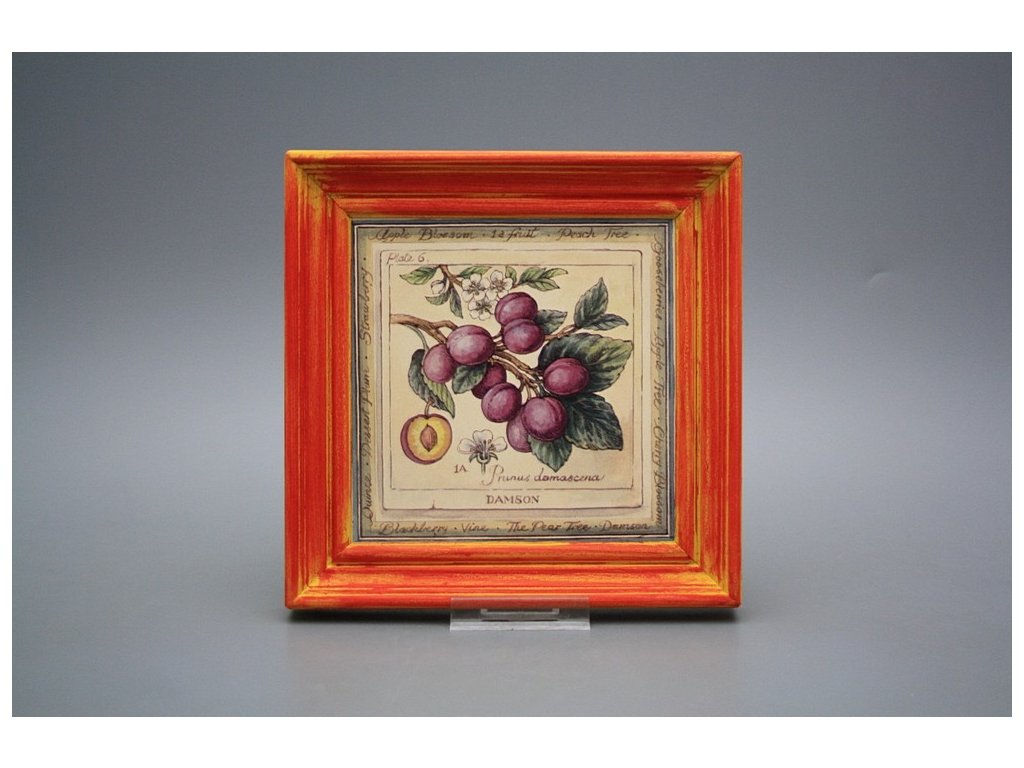 Keramisches Bild zum Aufhängen mit Holzrahmen, Temperatur beim Ausbrennen des Motivs in Höhe von 820°C, abriebfestes, waschbares Dekor.