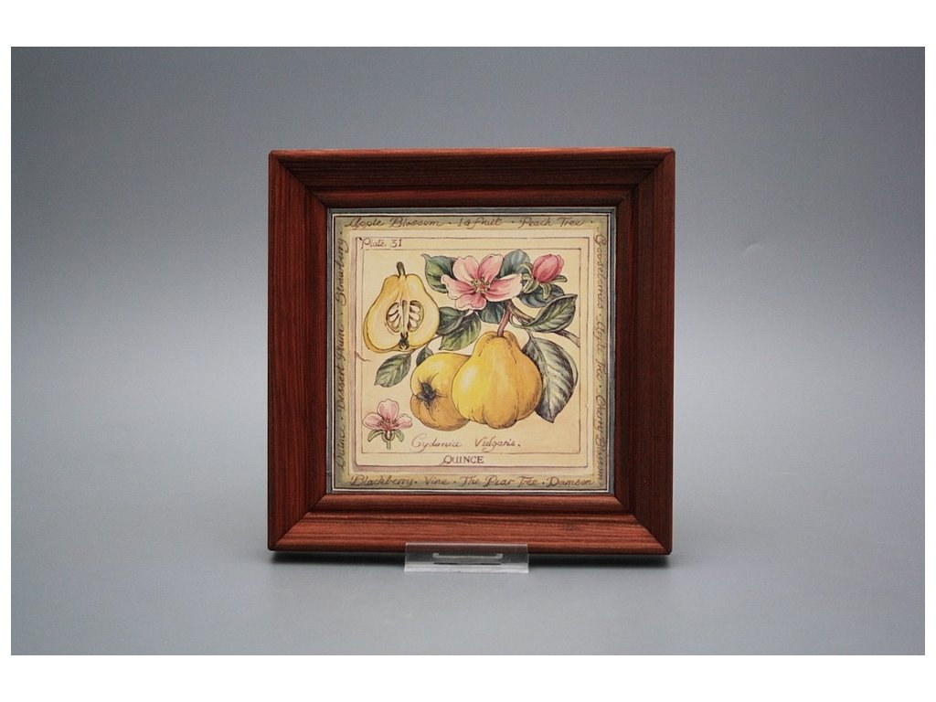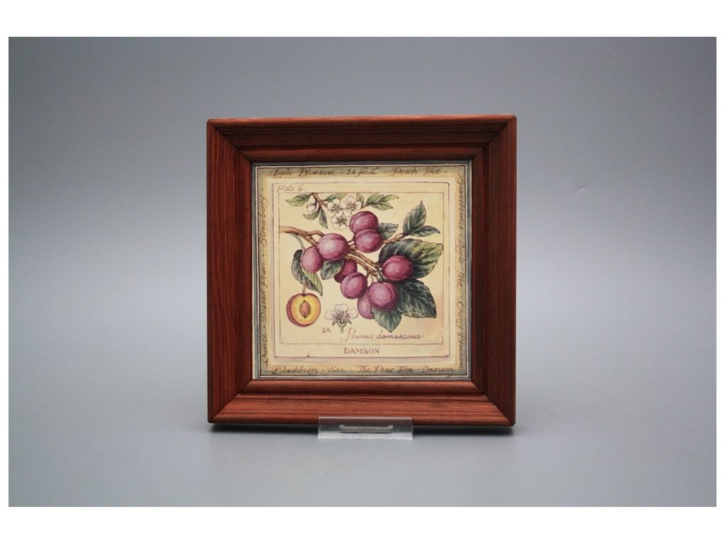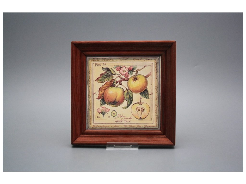 Keramisches Bild zum Aufhängen mit Holzrahmen, Temperatur beim Ausbrennen des Motivs in Höhe von 820°C, abriebfestes, waschbares Dekor.