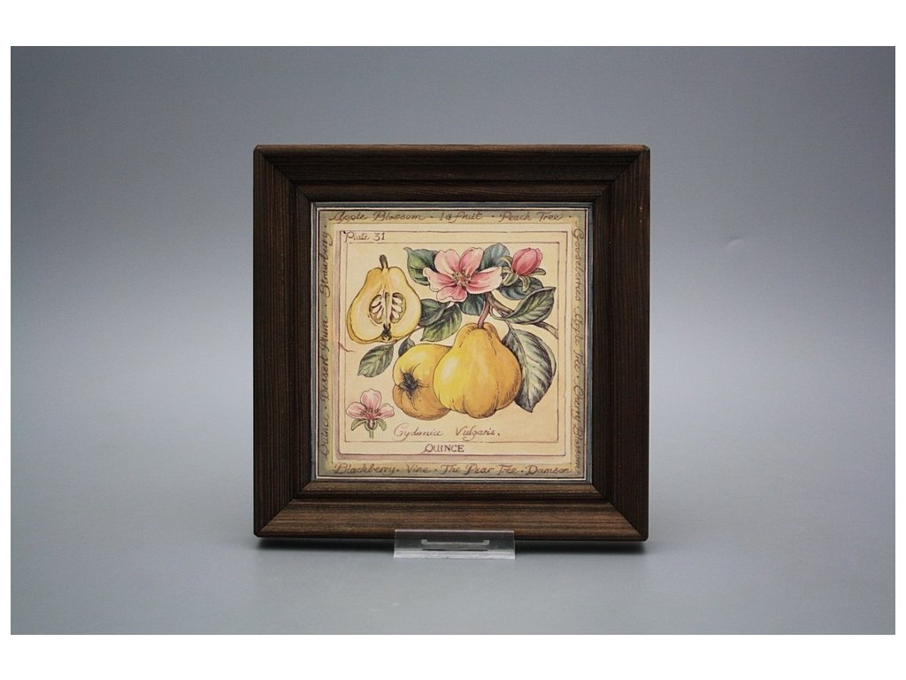 Keramisches Bild zum Aufhängen mit Holzrahmen, Temperatur beim Ausbrennen des Motivs in Höhe von 820°C, abriebfestes, waschbares Dekor.