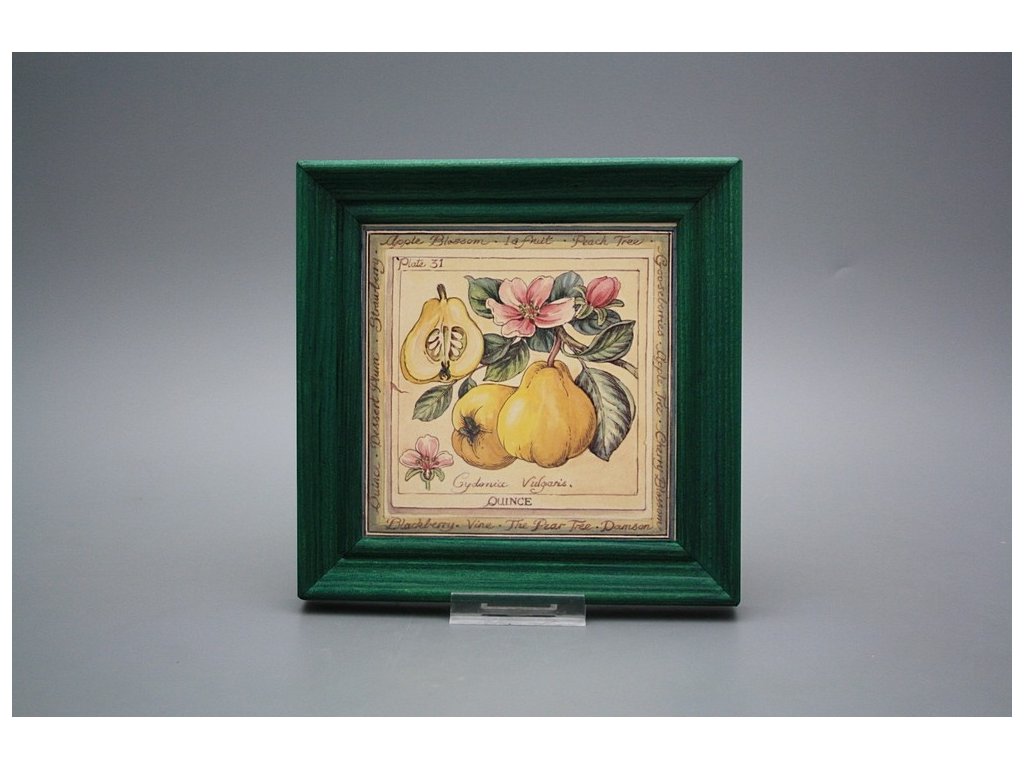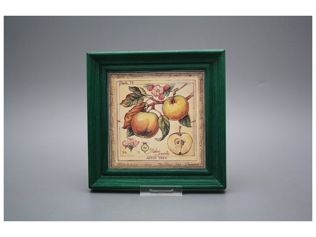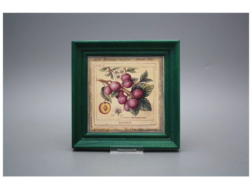 Keramisches Bild zum Aufhängen mit Holzrahmen, Temperatur beim Ausbrennen des Motivs in Höhe von 820°C, abriebfestes, waschbares Dekor.