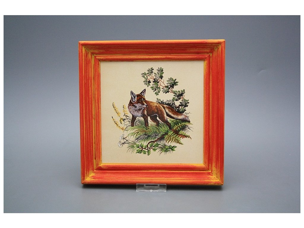 Keramisches Bild zum Aufhängen mit Holzrahmen, Temperatur beim Ausbrennen des Motivs in Höhe von 820°C, abriebfestes, waschbares Dekor.