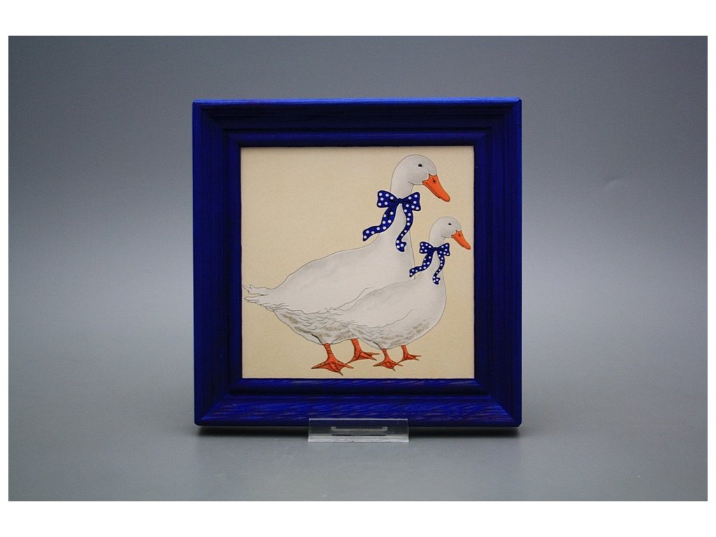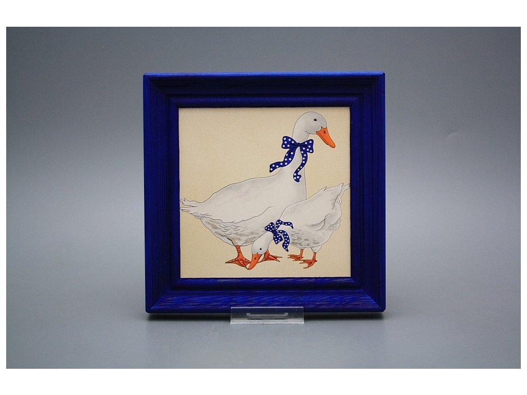 Keramisches Bild zum Aufhängen mit Holzrahmen, Temperatur beim Ausbrennen des Motivs in Höhe von 820°C, abriebfestes, waschbares Dekor.