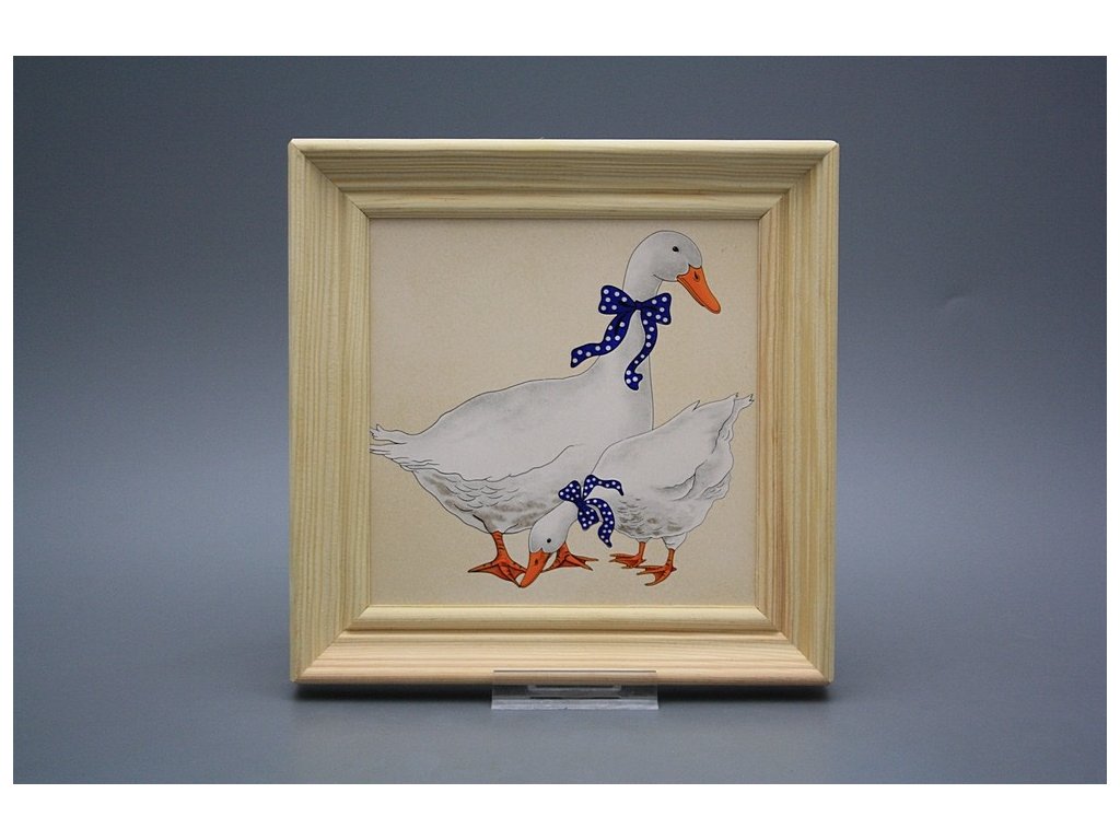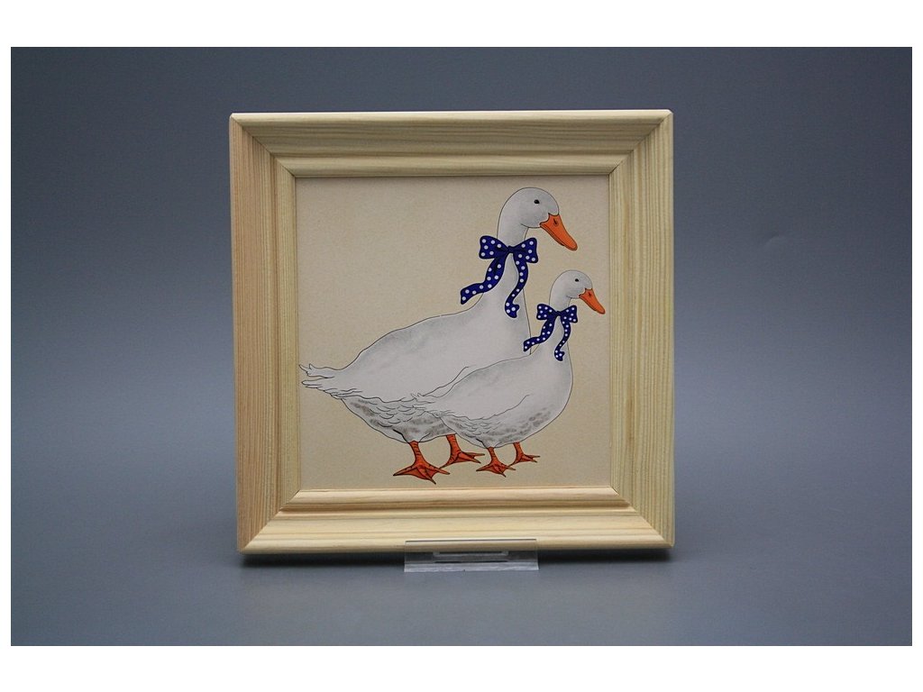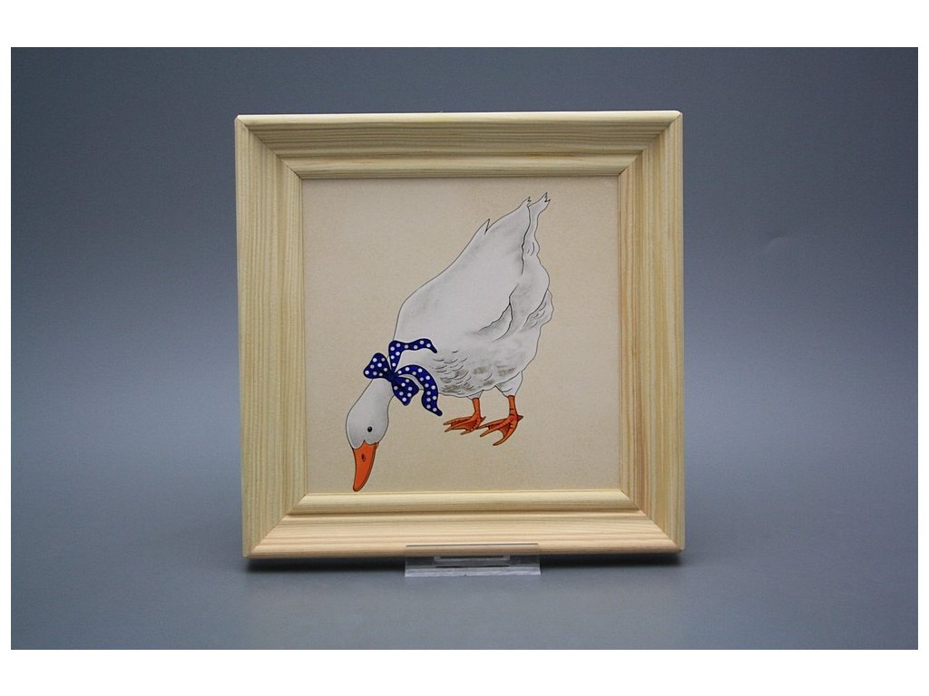 Keramisches Bild zum Aufhängen mit Holzrahmen, Temperatur beim Ausbrennen des Motivs in Höhe von 820°C, abriebfestes, waschbares Dekor.