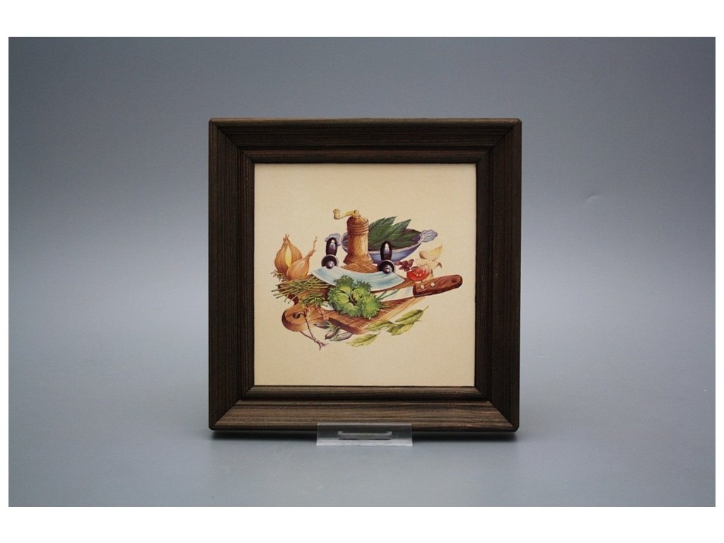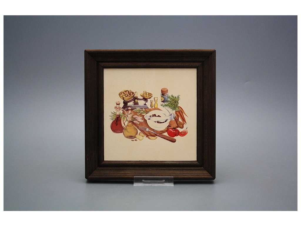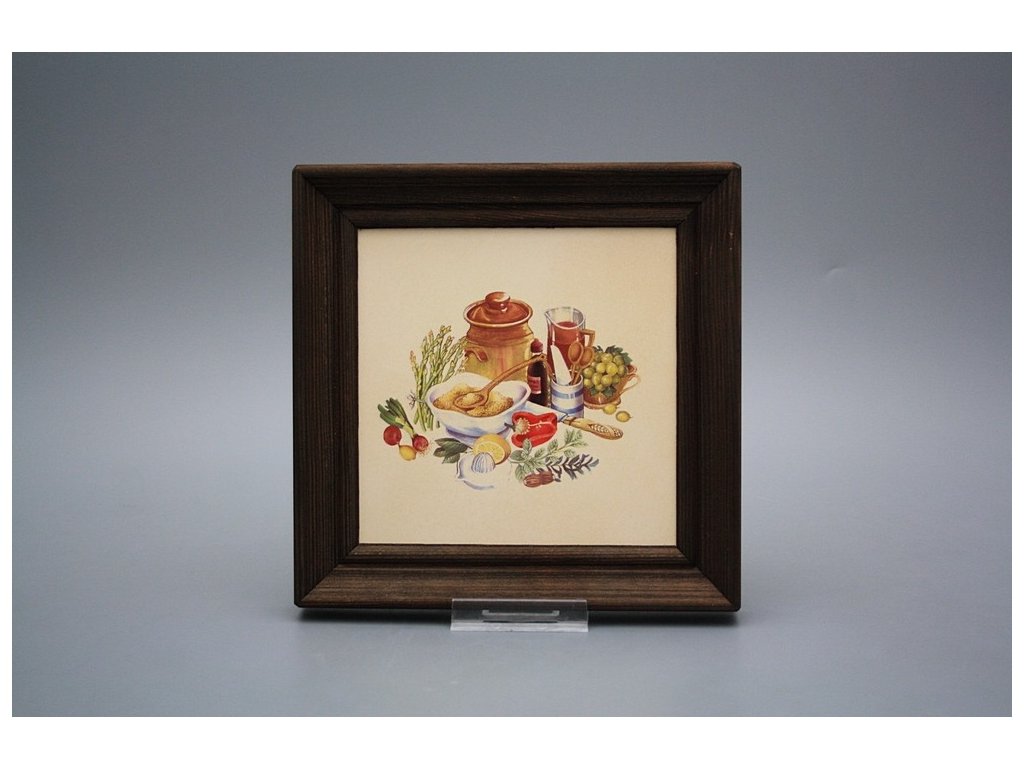 Keramisches Bild zum Aufhängen mit Holzrahmen, Temperatur beim Ausbrennen des Motivs in Höhe von 820°C, abriebfestes, waschbares Dekor.