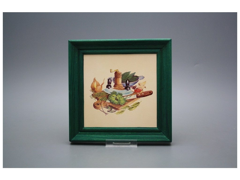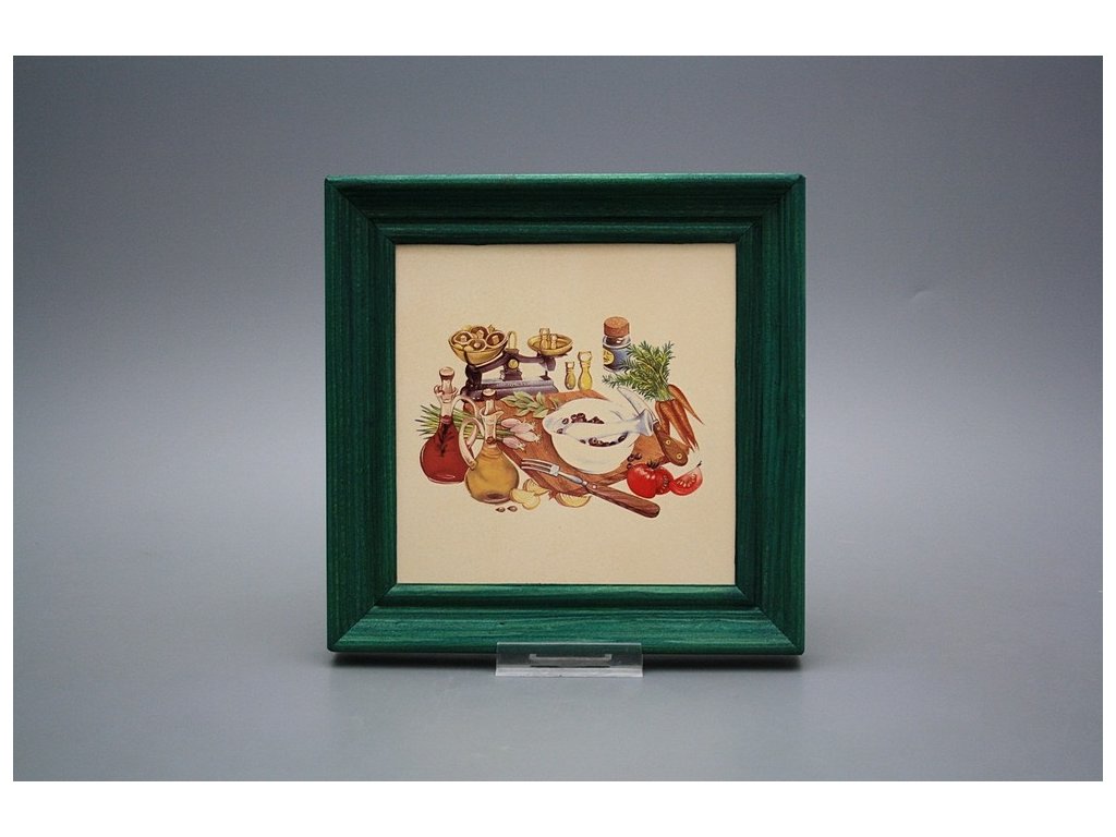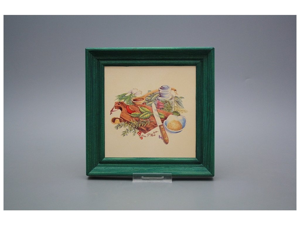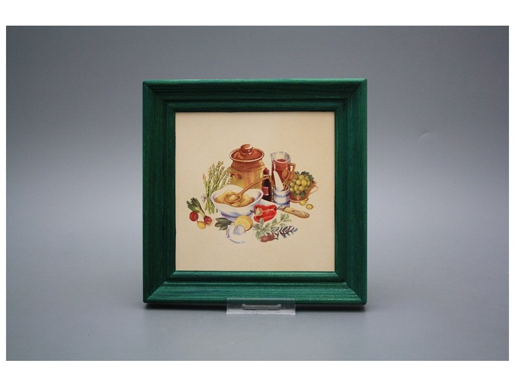 Keramisches Bild zum Aufhängen mit Holzrahmen, Temperatur beim Ausbrennen des Motivs in Höhe von 820°C, abriebfestes, waschbares Dekor.