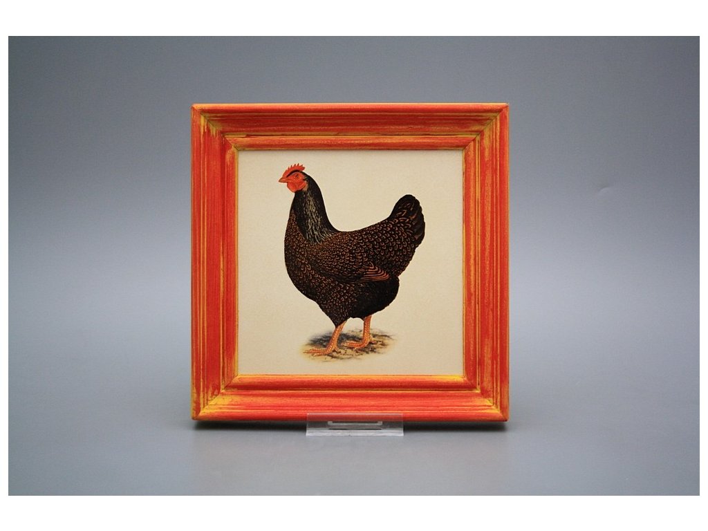 Keramisches Bild zum Aufhängen mit Holzrahmen, Temperatur beim Ausbrennen des Motivs in Höhe von 820°C, abriebfestes, waschbares Dekor.
