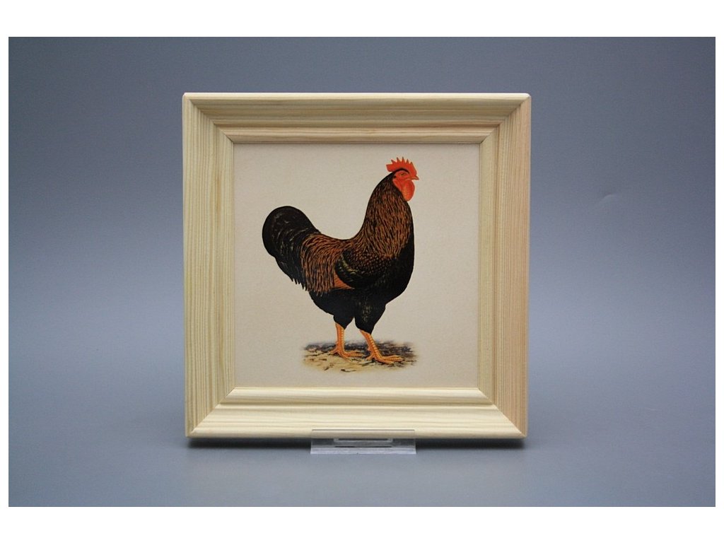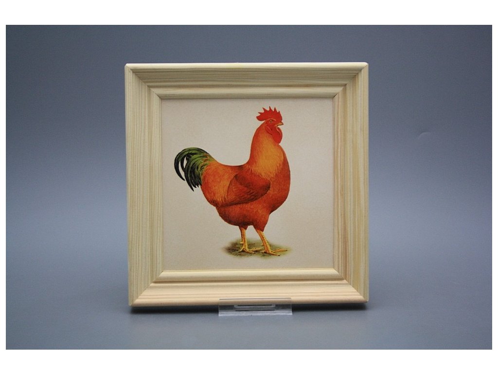 Keramisches Bild zum Aufhängen mit Holzrahmen, Temperatur beim Ausbrennen des Motivs in Höhe von 820°C, abriebfestes, waschbares Dekor.