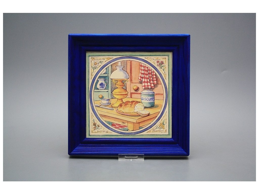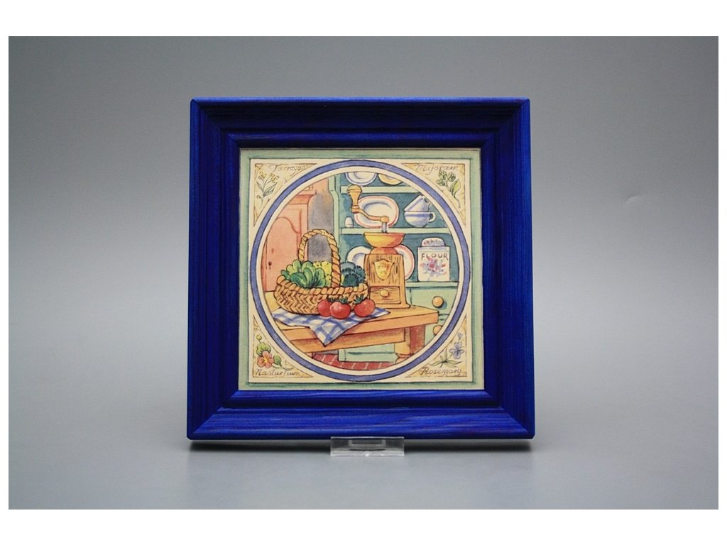 Keramisches Bild zum Aufhängen mit Holzrahmen, Temperatur beim Ausbrennen des Motivs in Höhe von 820°C, abriebfestes, waschbares Dekor.