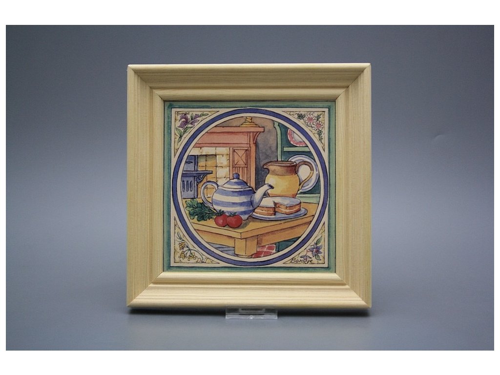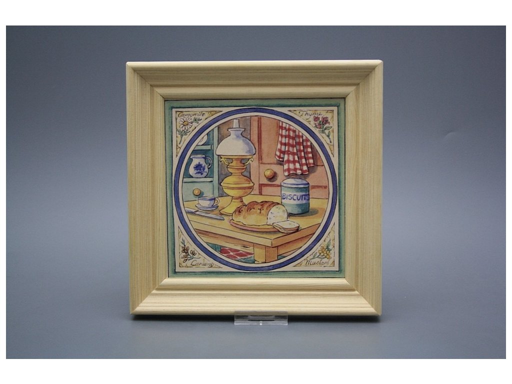 Keramisches Bild zum Aufhängen mit Holzrahmen, Temperatur beim Ausbrennen des Motivs in Höhe von 820°C, abriebfestes, waschbares Dekor.