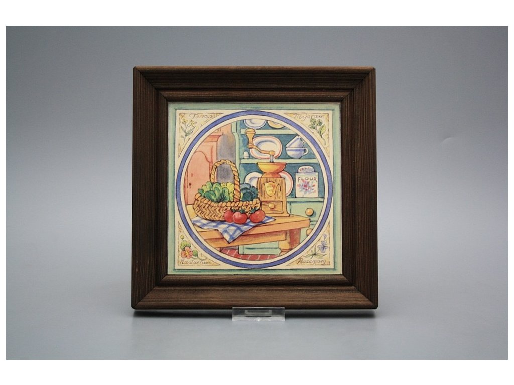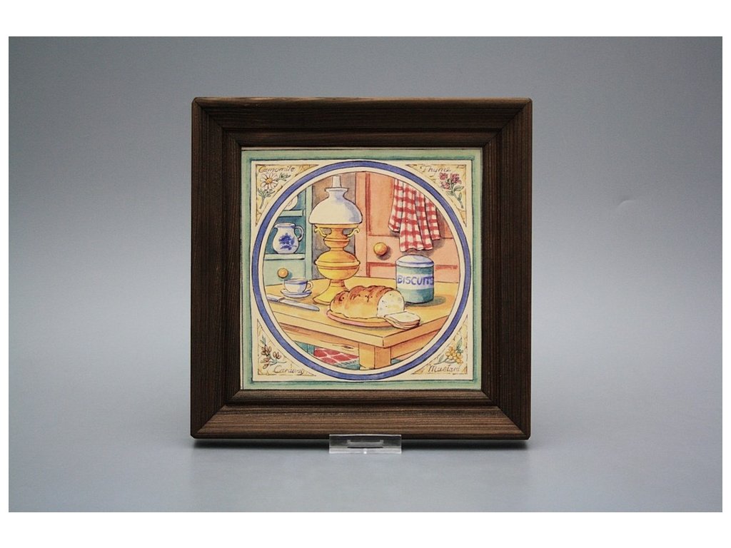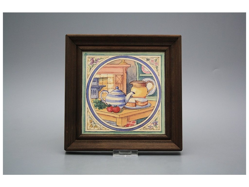 Keramisches Bild zum Aufhängen mit Holzrahmen, Temperatur beim Ausbrennen des Motivs in Höhe von 820°C, abriebfestes, waschbares Dekor.