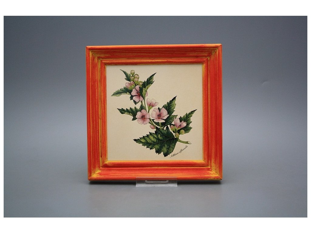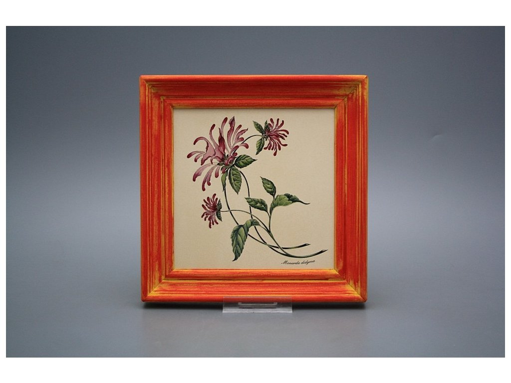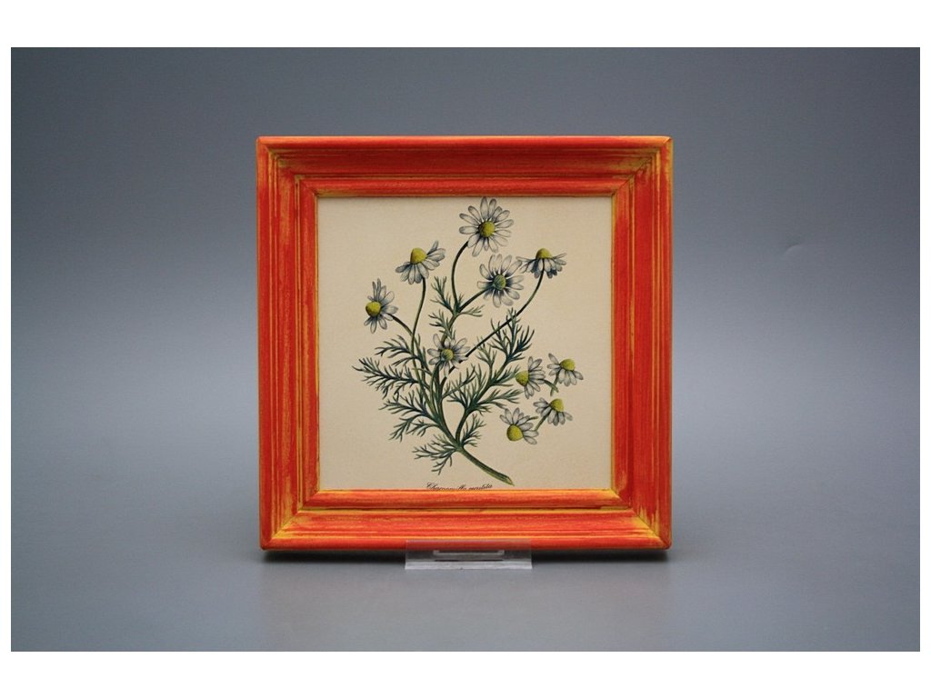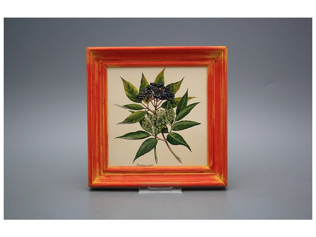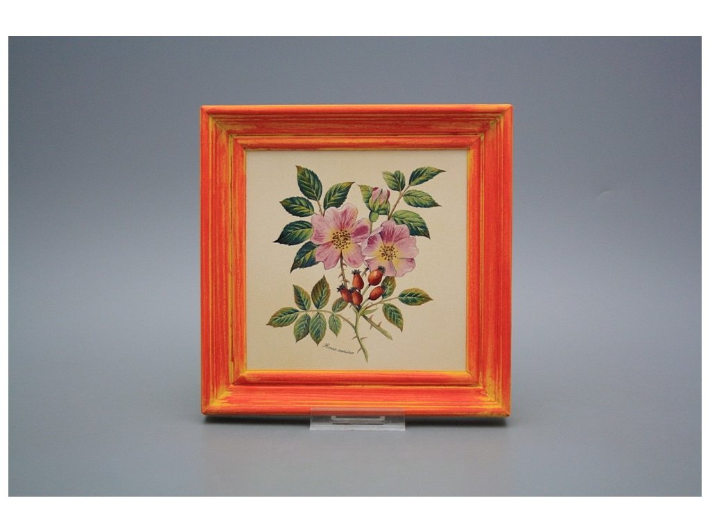 Keramisches Bild zum Aufhängen mit Holzrahmen, Temperatur beim Ausbrennen des Motivs in Höhe von 820°C, abriebfestes, waschbares Dekor.