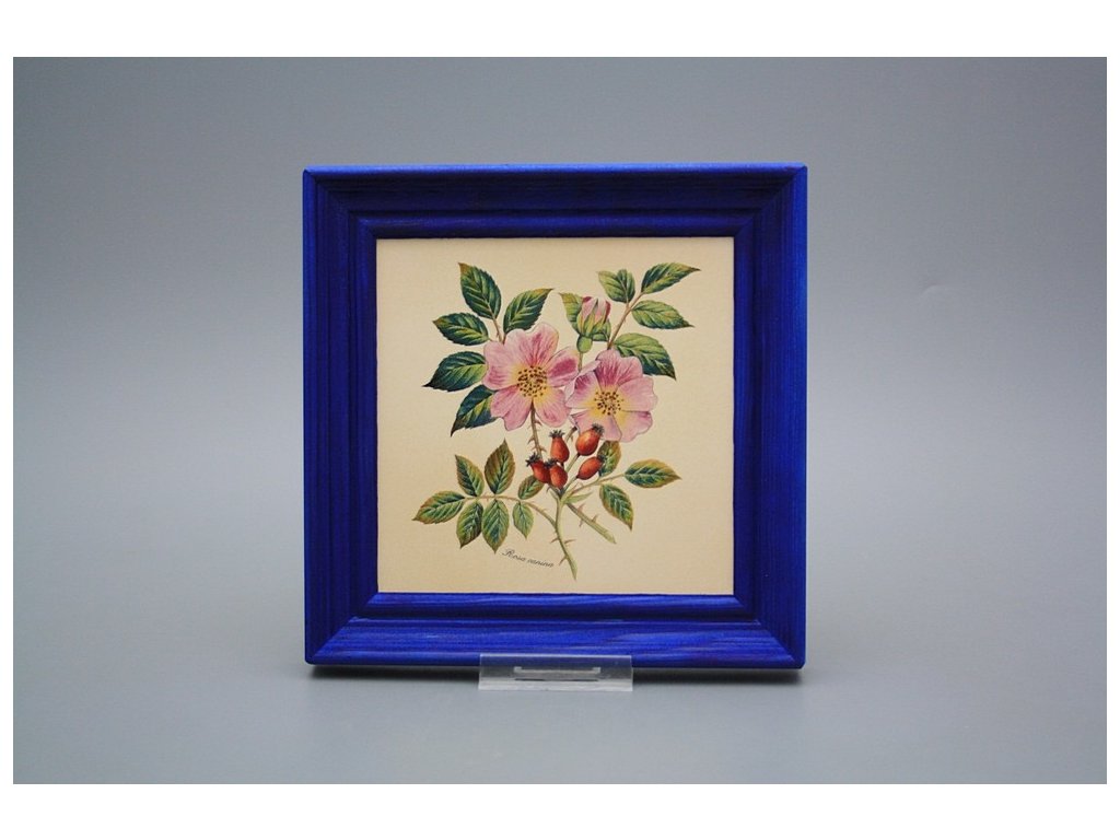 Keramisches Bild zum Aufhängen mit Holzrahmen, Temperatur beim Ausbrennen des Motivs in Höhe von 820°C, abriebfestes, waschbares Dekor.