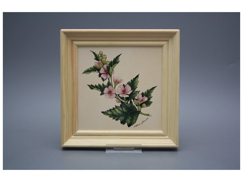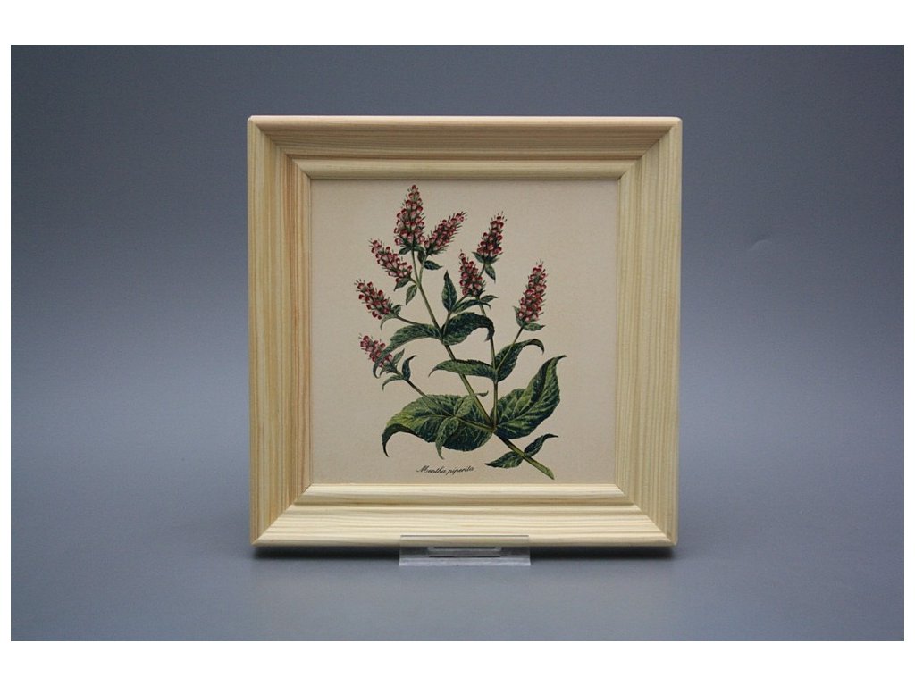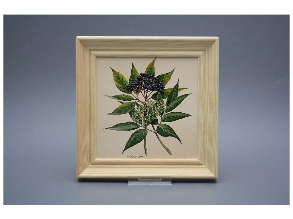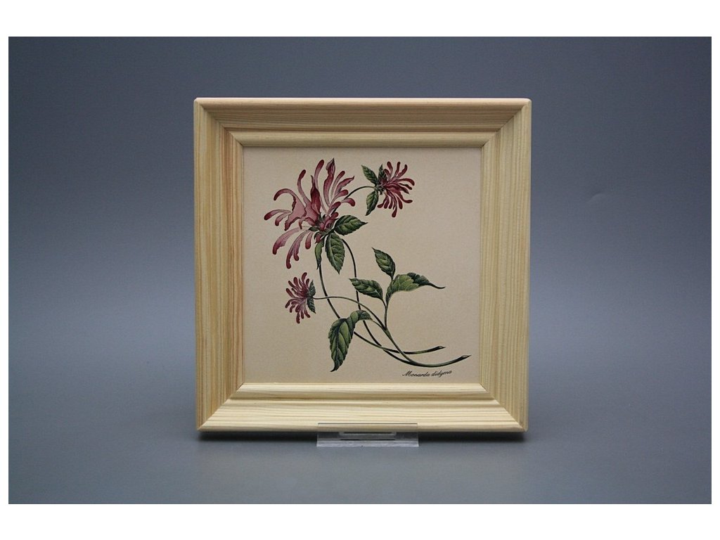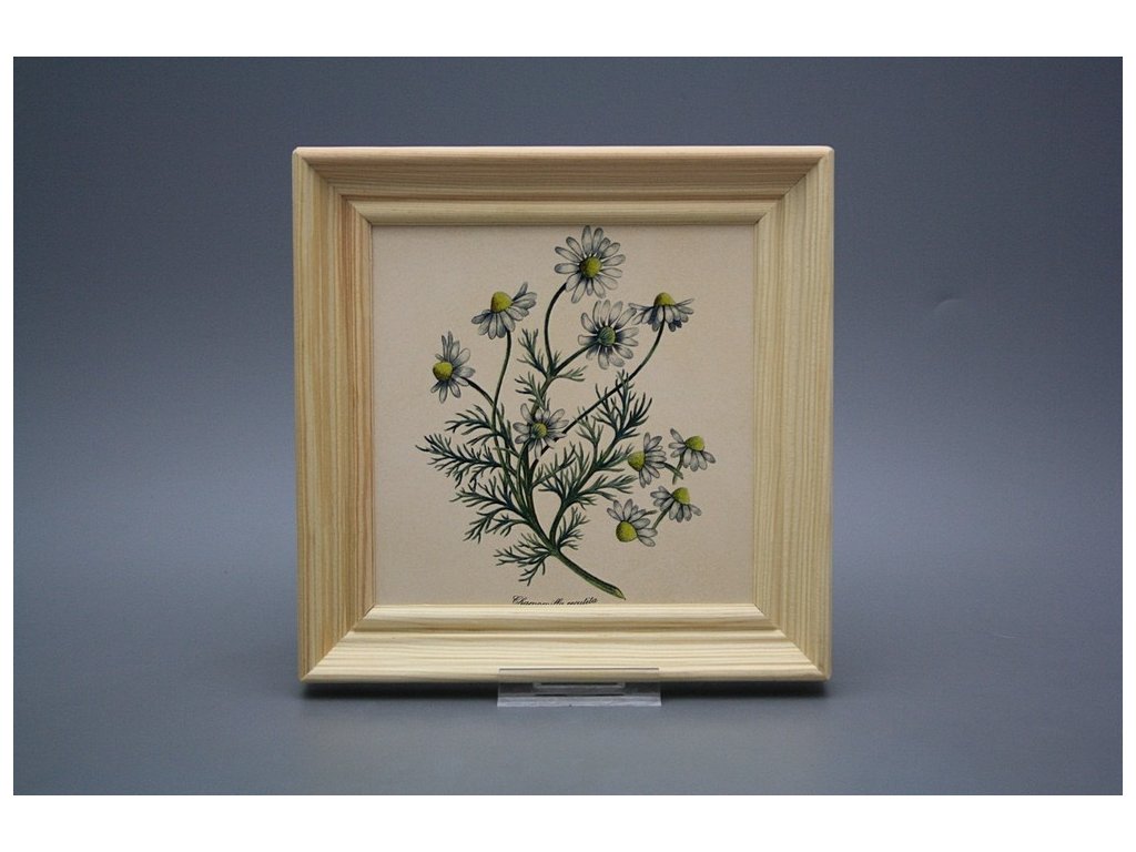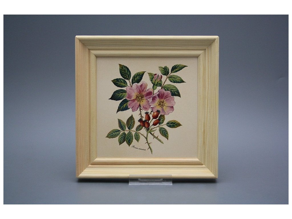 Keramisches Bild zum Aufhängen mit Holzrahmen, Temperatur beim Ausbrennen des Motivs in Höhe von 820°C, abriebfestes, waschbares Dekor.
