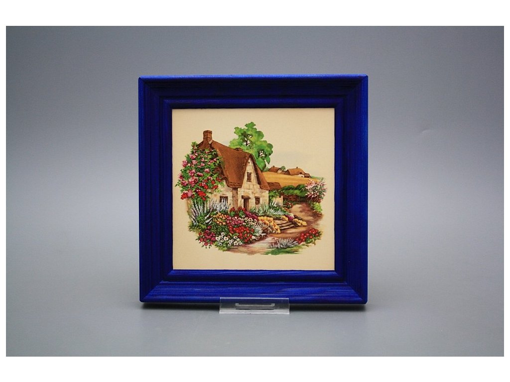 Keramisches Bild zum Aufhängen mit Holzrahmen, Temperatur beim Ausbrennen des Motivs in Höhe von 820°C, abriebfestes, waschbares Dekor.