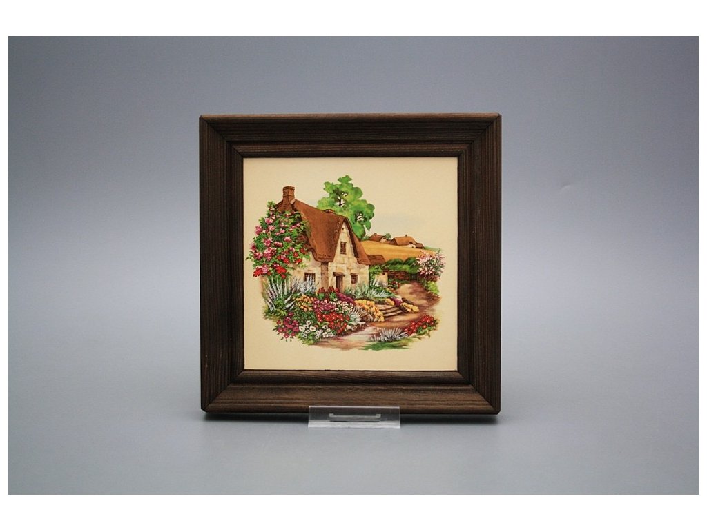 Keramisches Bild zum Aufhängen mit Holzrahmen, Temperatur beim Ausbrennen des Motivs in Höhe von 820°C, abriebfestes, waschbares Dekor.