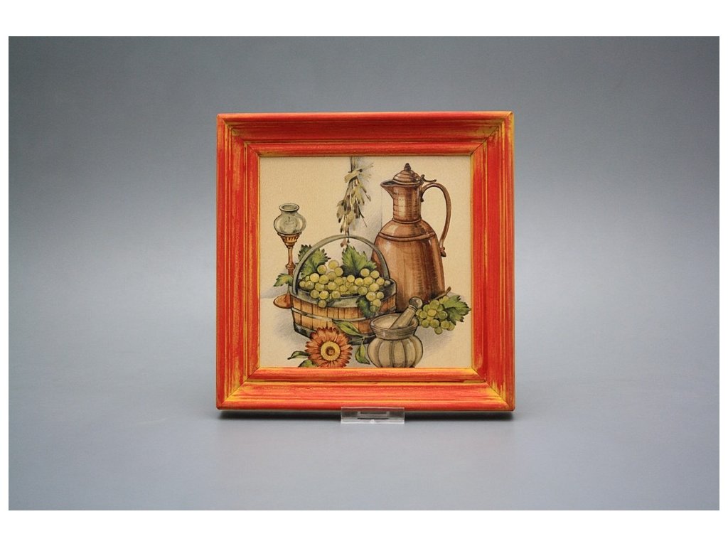 Keramisches Bild zum Aufhängen mit Holzrahmen, Temperatur beim Ausbrennen des Motivs in Höhe von 820°C, abriebfestes, waschbares Dekor.