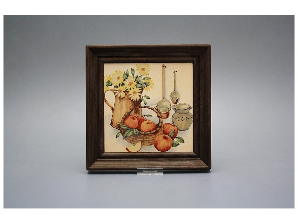 Keramisches Bild zum Aufhängen mit Holzrahmen, Temperatur beim Ausbrennen des Motivs in Höhe von 820°C, abriebfestes, waschbares Dekor.