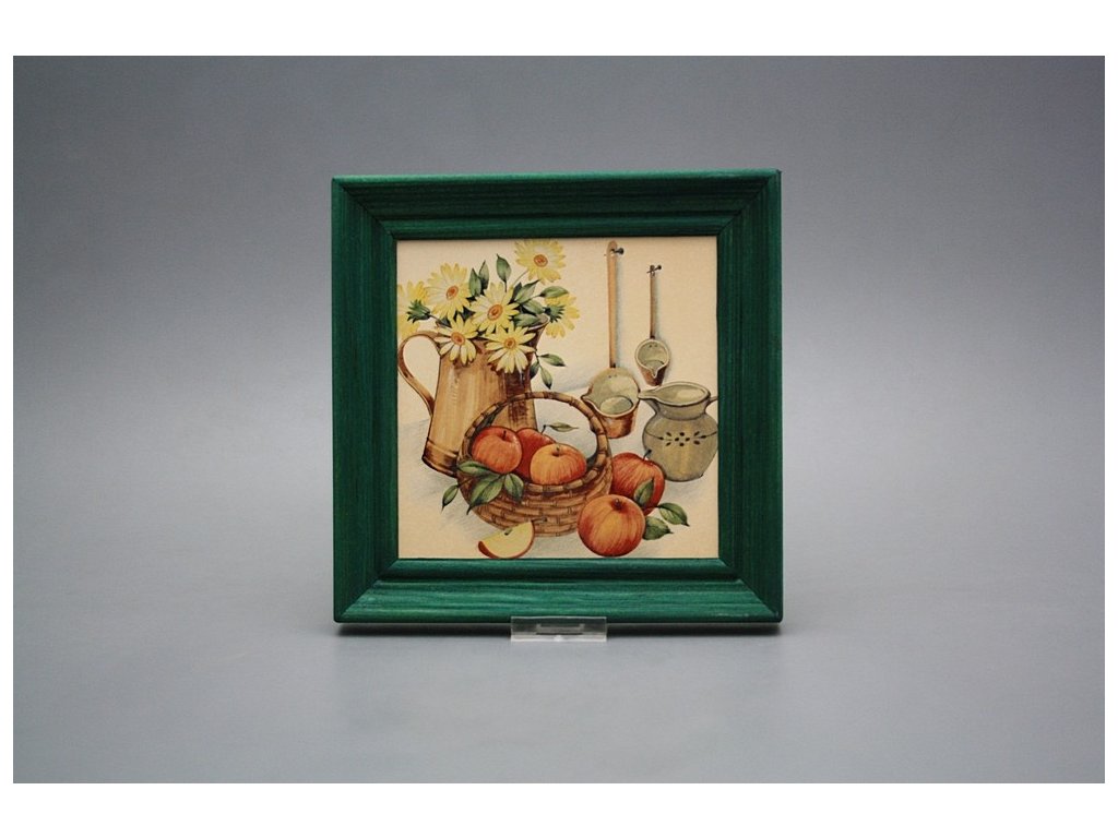 Keramisches Bild zum Aufhängen mit Holzrahmen, Temperatur beim Ausbrennen des Motivs in Höhe von 820°C, abriebfestes, waschbares Dekor.