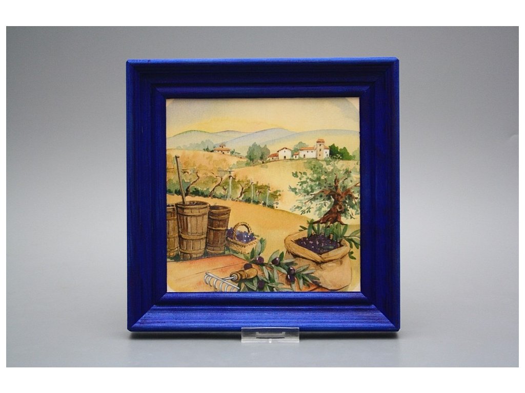 Keramisches Bild zum Aufhängen mit Holzrahmen, Temperatur beim Ausbrennen des Motivs in Höhe von 820°C, abriebfestes, waschbares Dekor.