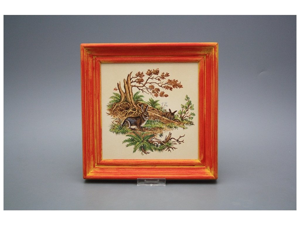 Keramisches Bild zum Aufhängen mit Holzrahmen, Temperatur beim Ausbrennen des Motivs in Höhe von 820°C, abriebfestes, waschbares Dekor.