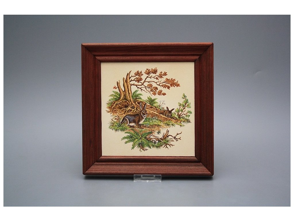 Keramisches Bild zum Aufhängen mit Holzrahmen, Temperatur beim Ausbrennen des Motivs in Höhe von 820°C, abriebfestes, waschbares Dekor.