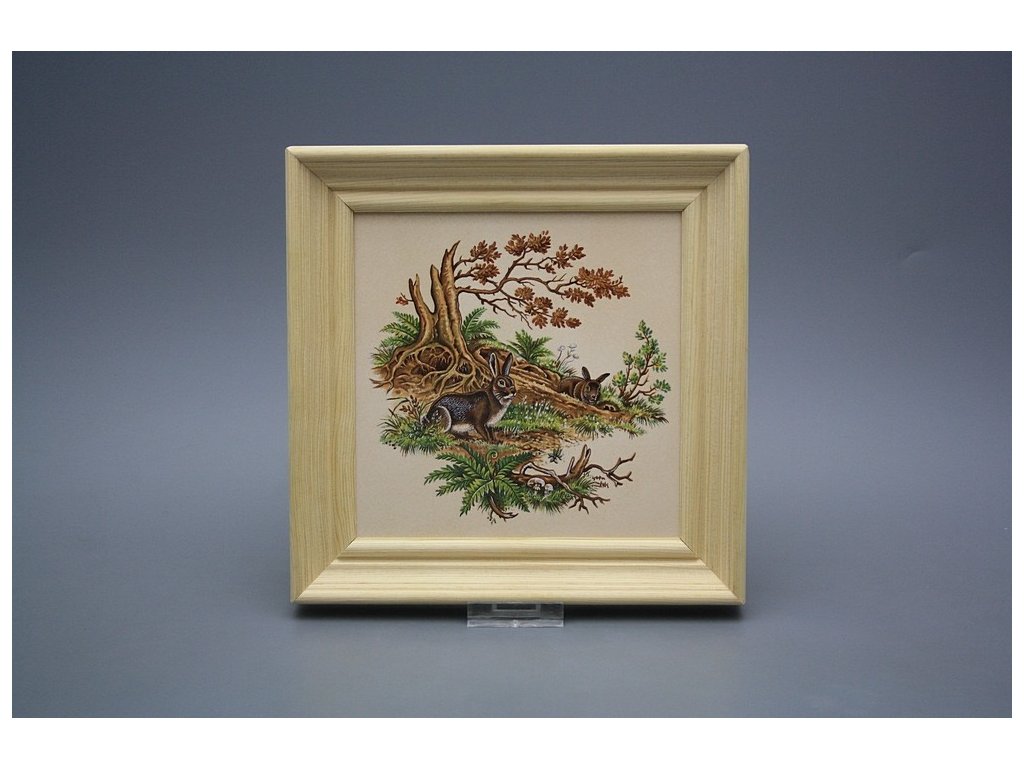 Keramisches Bild zum Aufhängen mit Holzrahmen, Temperatur beim Ausbrennen des Motivs in Höhe von 820°C, abriebfestes, waschbares Dekor.