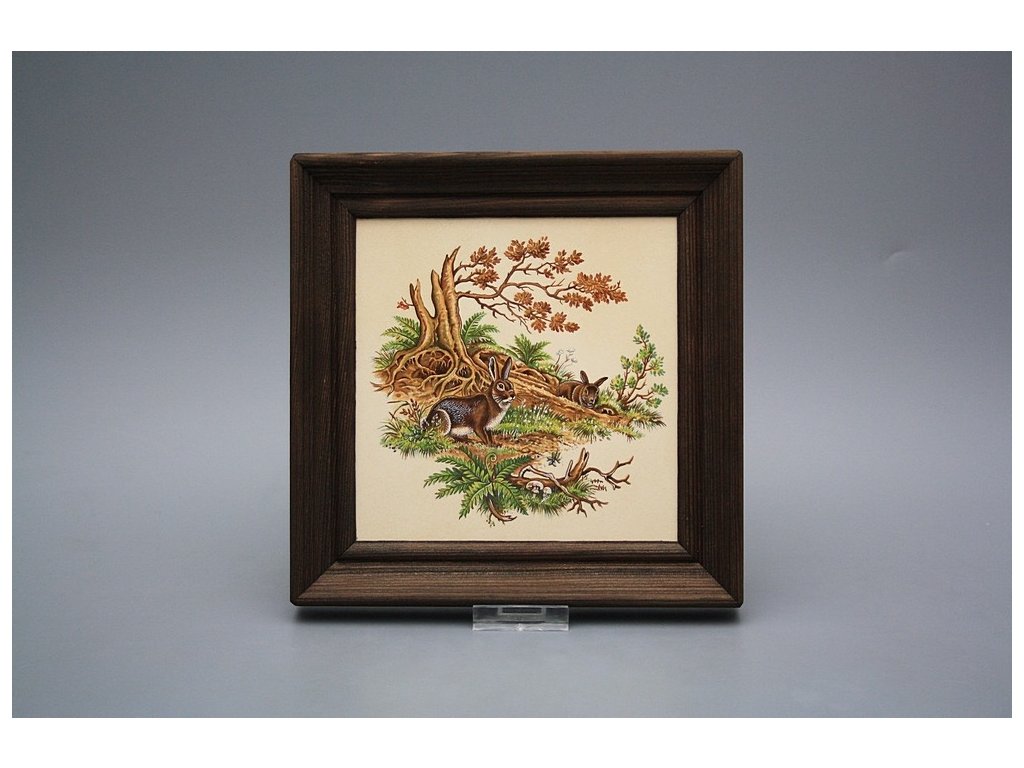 Keramisches Bild zum Aufhängen mit Holzrahmen, Temperatur beim Ausbrennen des Motivs in Höhe von 820°C, abriebfestes, waschbares Dekor.