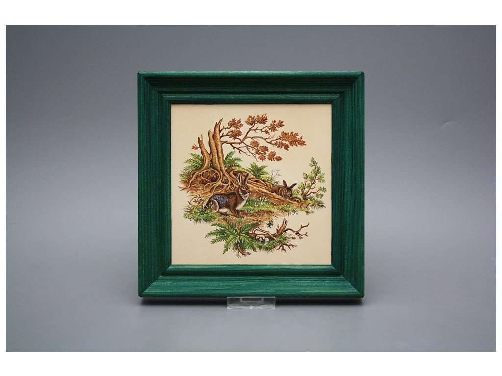 Keramisches Bild zum Aufhängen mit Holzrahmen, Temperatur beim Ausbrennen des Motivs in Höhe von 820°C, abriebfestes, waschbares Dekor.