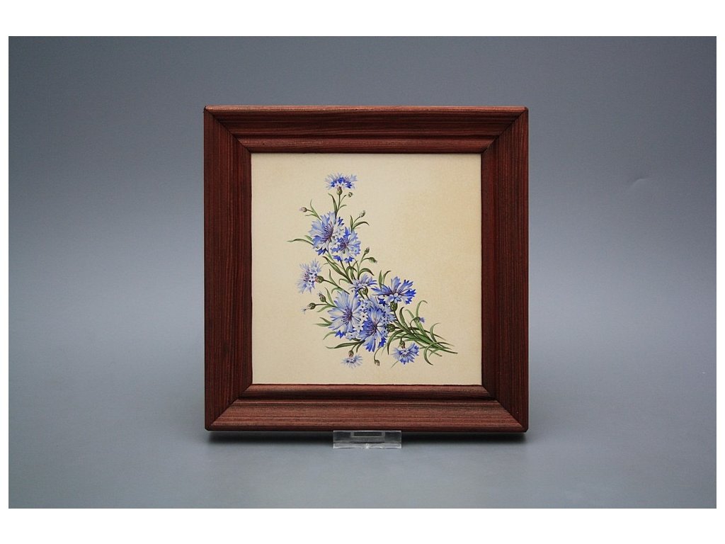Keramisches Bild zum Aufhängen mit Holzrahmen, Temperatur beim Ausbrennen des Motivs in Höhe von 820°C, abriebfestes, waschbares Dekor.