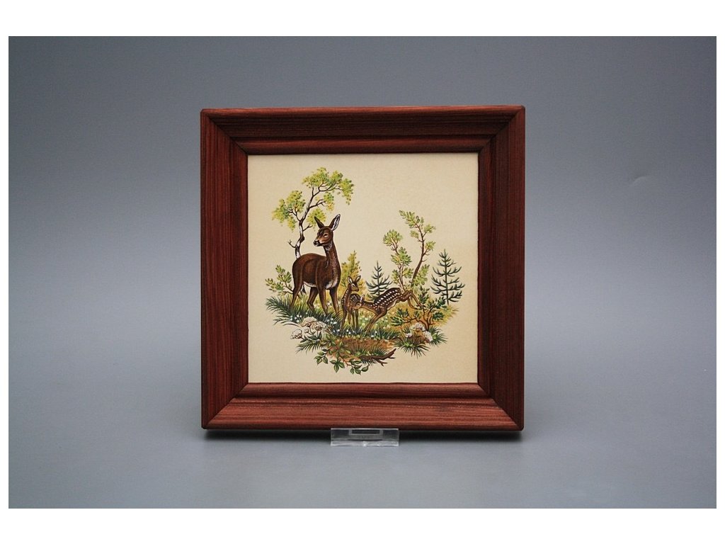Keramisches Bild zum Aufhängen mit Holzrahmen, Temperatur beim Ausbrennen des Motivs in Höhe von 820°C, abriebfestes, waschbares Dekor.