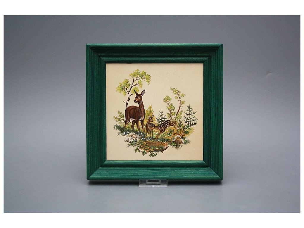Keramisches Bild zum Aufhängen mit Holzrahmen, Temperatur beim Ausbrennen des Motivs in Höhe von 820°C, abriebfestes, waschbares Dekor.