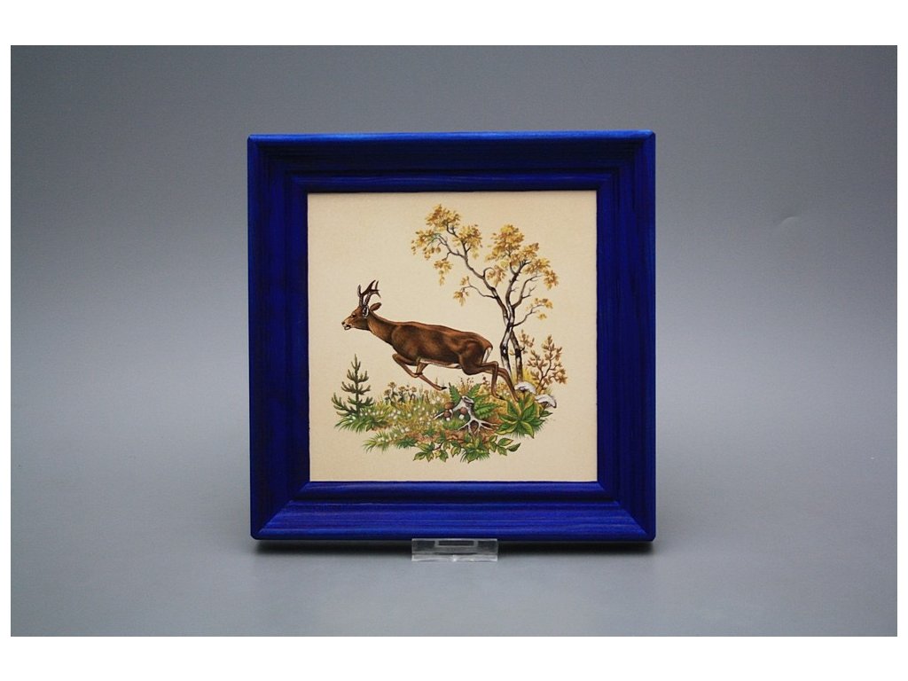 Keramisches Bild zum Aufhängen mit Holzrahmen, Temperatur beim Ausbrennen des Motivs in Höhe von 820°C, abriebfestes, waschbares Dekor.