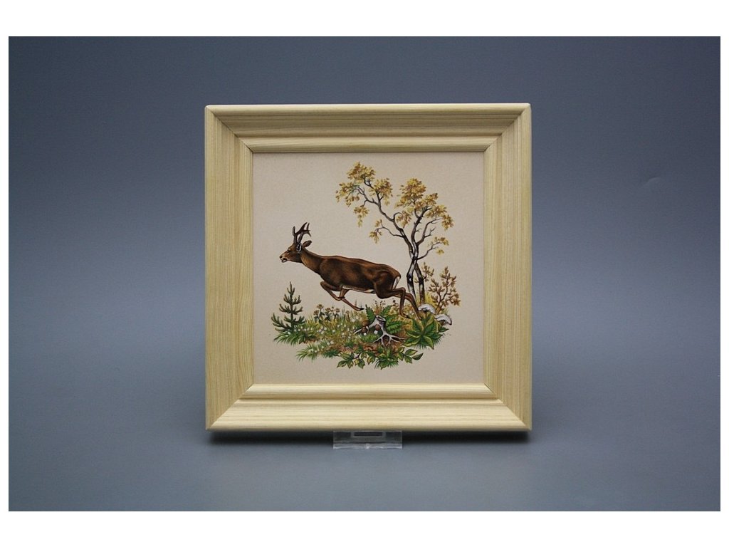 Keramisches Bild zum Aufhängen mit Holzrahmen, Temperatur beim Ausbrennen des Motivs in Höhe von 820°C, abriebfestes, waschbares Dekor.