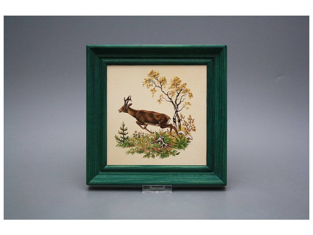 Keramisches Bild zum Aufhängen mit Holzrahmen, Temperatur beim Ausbrennen des Motivs in Höhe von 820°C, abriebfestes, waschbares Dekor.