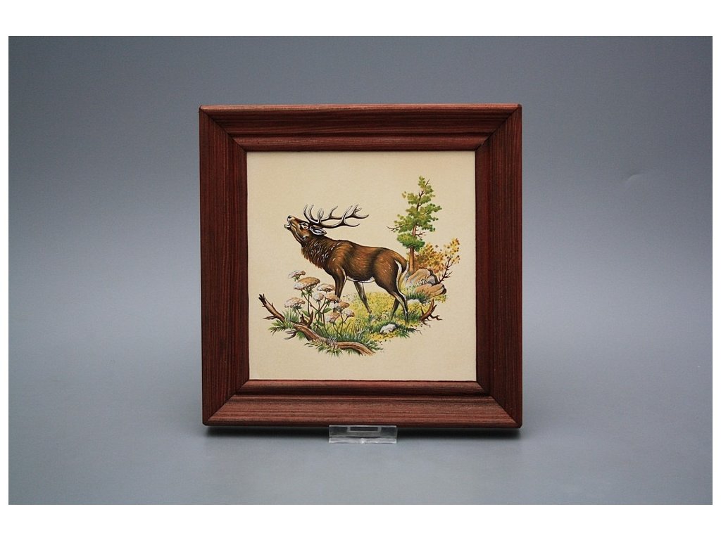 Keramisches Bild zum Aufhängen mit Holzrahmen, Temperatur beim Ausbrennen des Motivs in Höhe von 820°C, abriebfestes, waschbares Dekor.