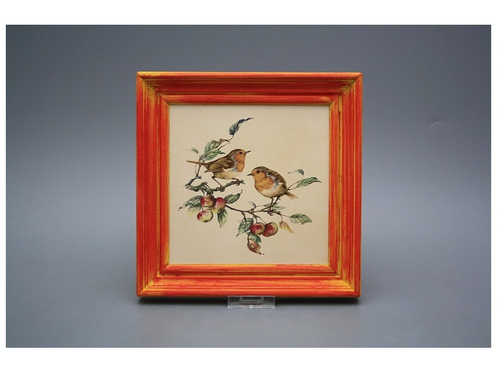Keramisches Bild zum Aufhängen mit Holzrahmen, Temperatur beim Ausbrennen des Motivs in Höhe von 820°C, abriebfestes, waschbares Dekor.