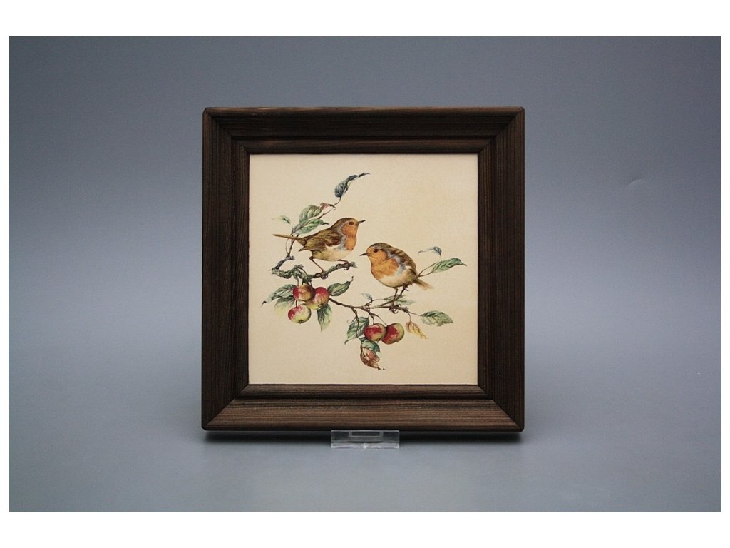 Keramisches Bild zum Aufhängen mit Holzrahmen, Temperatur beim Ausbrennen des Motivs in Höhe von 820°C, abriebfestes, waschbares Dekor.
