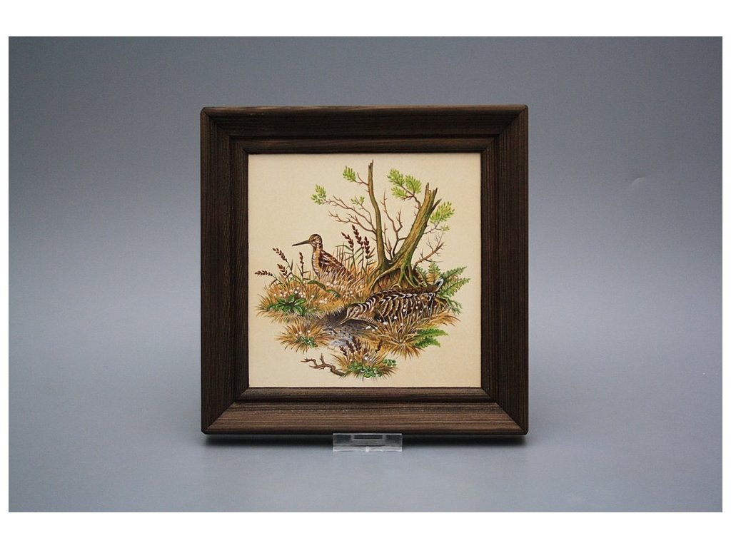 Keramisches Bild zum Aufhängen mit Holzrahmen, Temperatur beim Ausbrennen des Motivs in Höhe von 820°C, abriebfestes, waschbares Dekor.