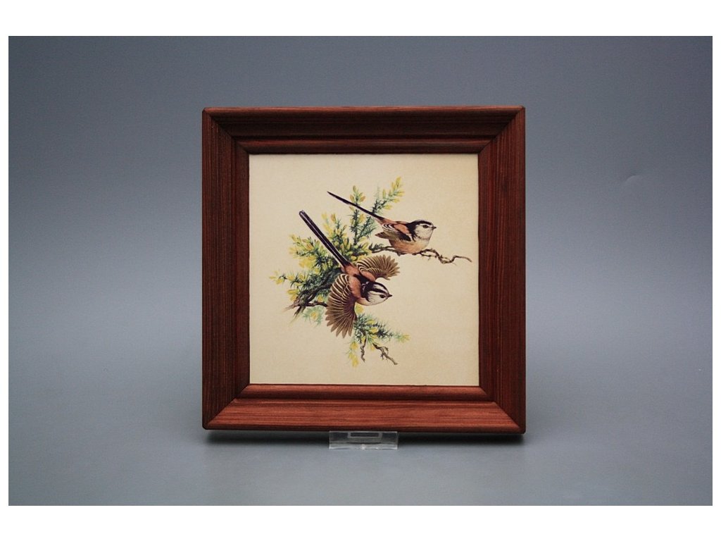 Keramisches Bild zum Aufhängen mit Holzrahmen, Temperatur beim Ausbrennen des Motivs in Höhe von 820°C, abriebfestes, waschbares Dekor.