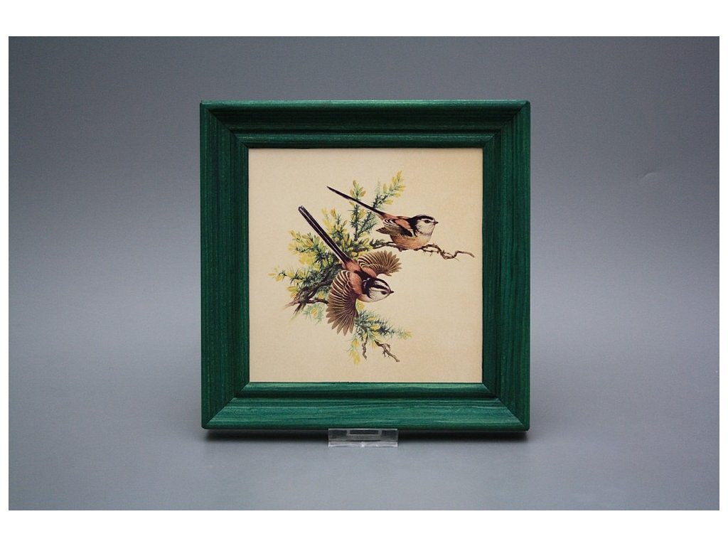 Keramisches Bild zum Aufhängen mit Holzrahmen, Temperatur beim Ausbrennen des Motivs in Höhe von 820°C, abriebfestes, waschbares Dekor.