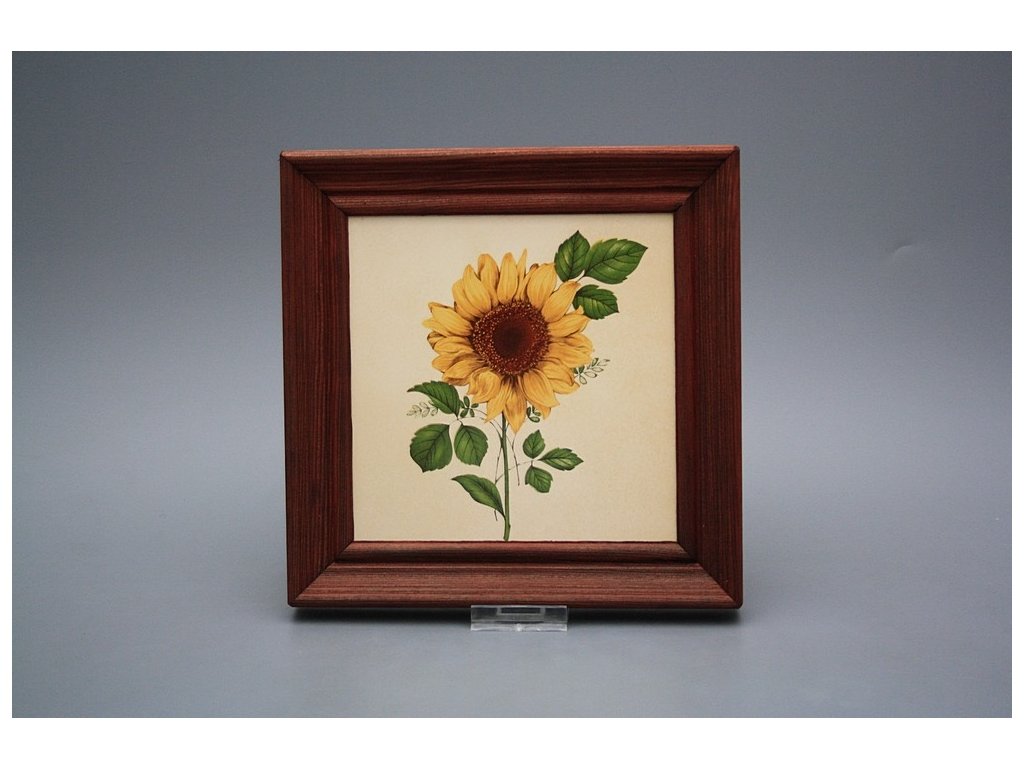 Keramisches Bild zum Aufhängen mit Holzrahmen, Temperatur beim Ausbrennen des Motivs in Höhe von 820°C, abriebfestes, waschbares Dekor.