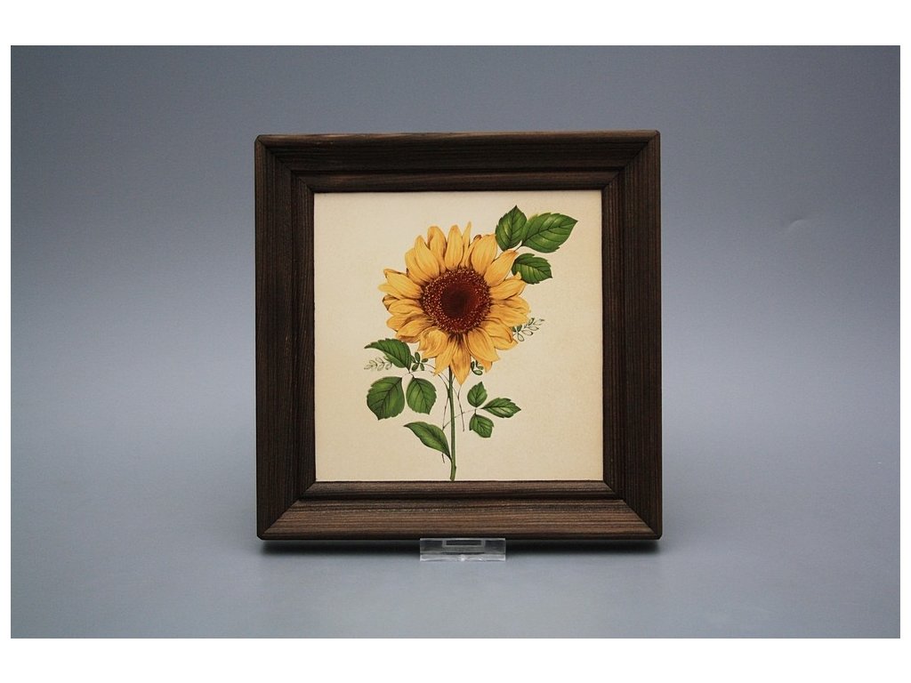 Keramisches Bild zum Aufhängen mit Holzrahmen, Temperatur beim Ausbrennen des Motivs in Höhe von 820°C, abriebfestes, waschbares Dekor.