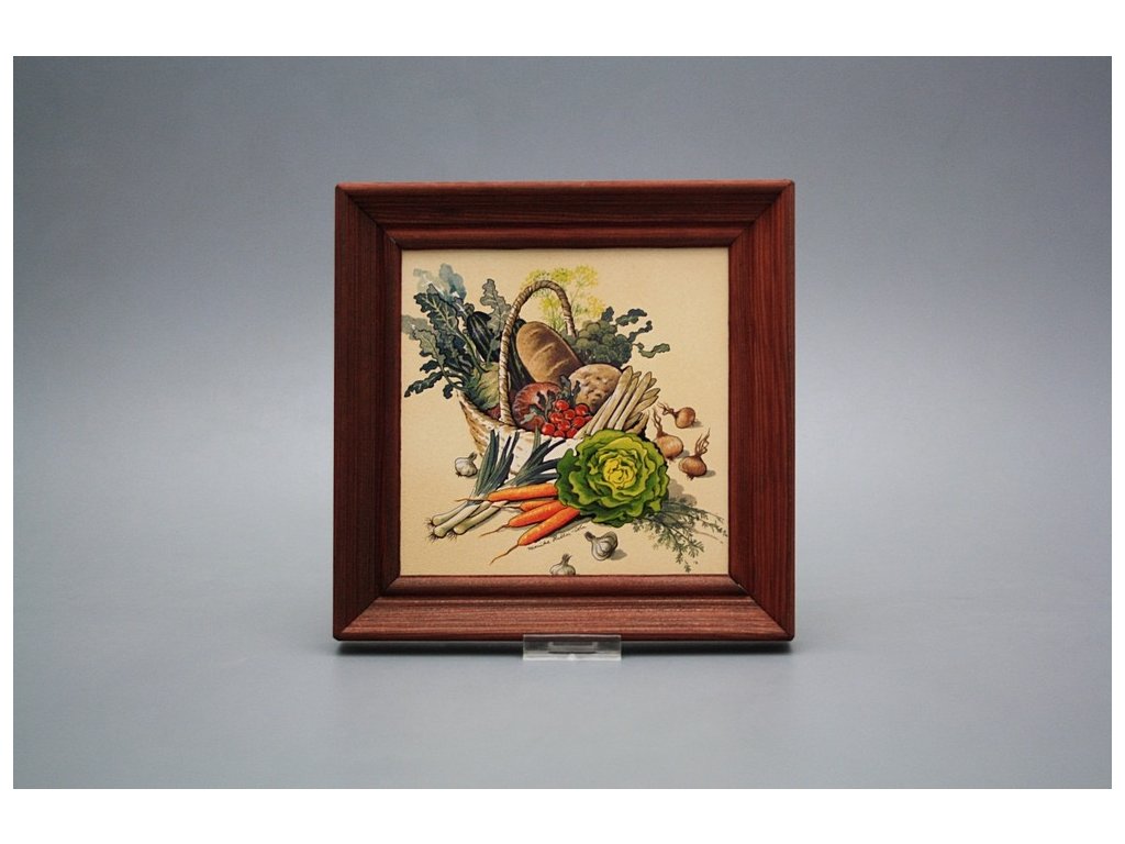 Keramisches Bild zum Aufhängen mit Holzrahmen, Temperatur beim Ausbrennen des Motivs in Höhe von 820°C, abriebfestes, waschbares Dekor.