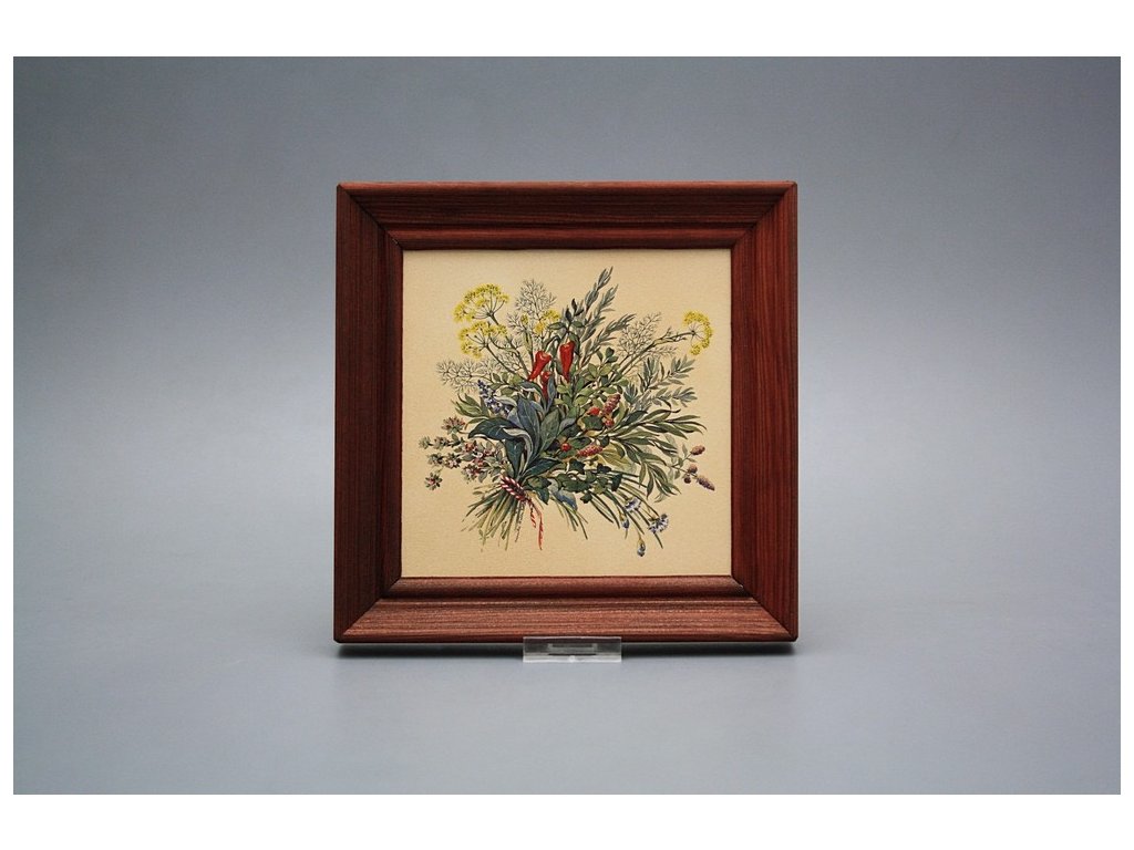Keramisches Bild zum Aufhängen mit Holzrahmen, Temperatur beim Ausbrennen des Motivs in Höhe von 820°C, abriebfestes, waschbares Dekor.