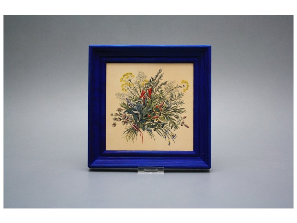 Keramisches Bild zum Aufhängen mit Holzrahmen, Temperatur beim Ausbrennen des Motivs in Höhe von 820°C, abriebfestes, waschbares Dekor.