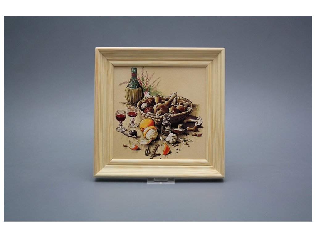 Keramisches Bild zum Aufhängen mit Holzrahmen, Temperatur beim Ausbrennen des Motivs in Höhe von 820°C, abriebfestes, waschbares Dekor.