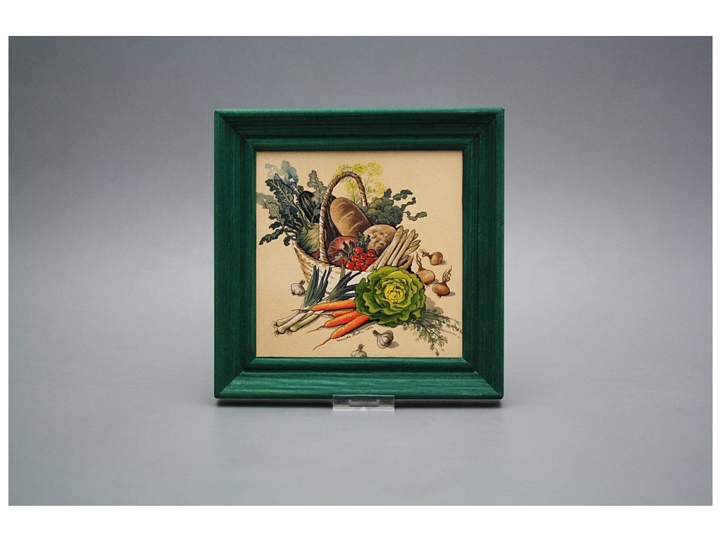 Keramisches Bild zum Aufhängen mit Holzrahmen, Temperatur beim Ausbrennen des Motivs in Höhe von 820°C, abriebfestes, waschbares Dekor.
