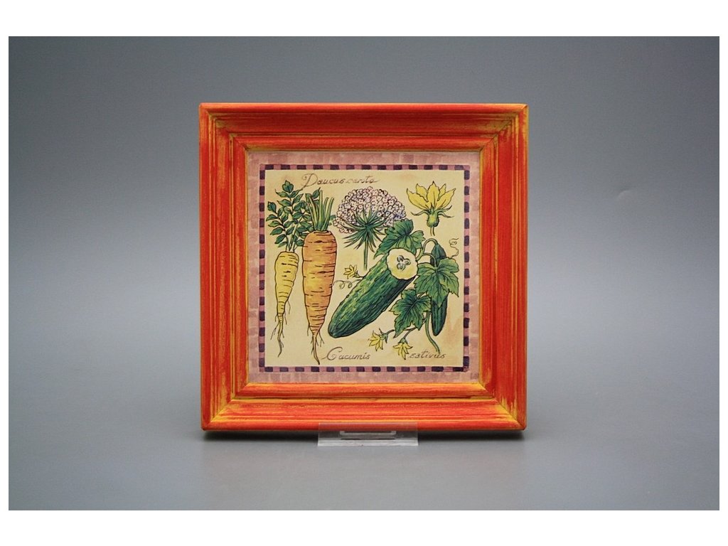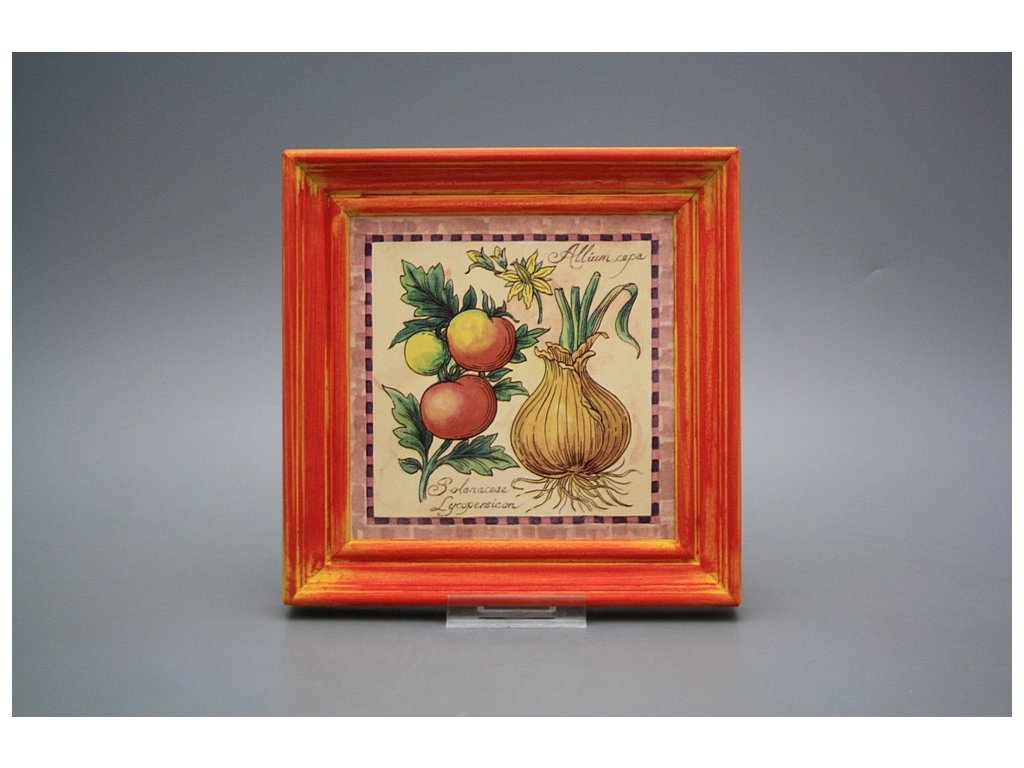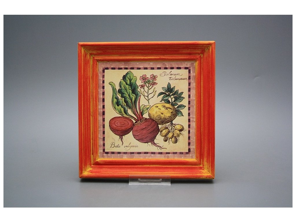 Keramisches Bild zum Aufhängen mit Holzrahmen, Temperatur beim Ausbrennen des Motivs in Höhe von 820°C, abriebfestes, waschbares Dekor.