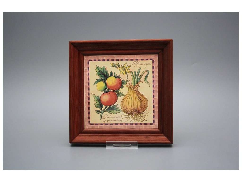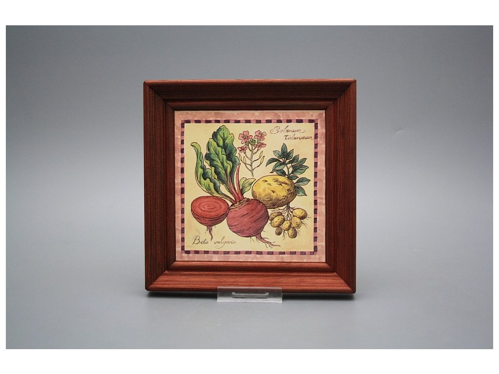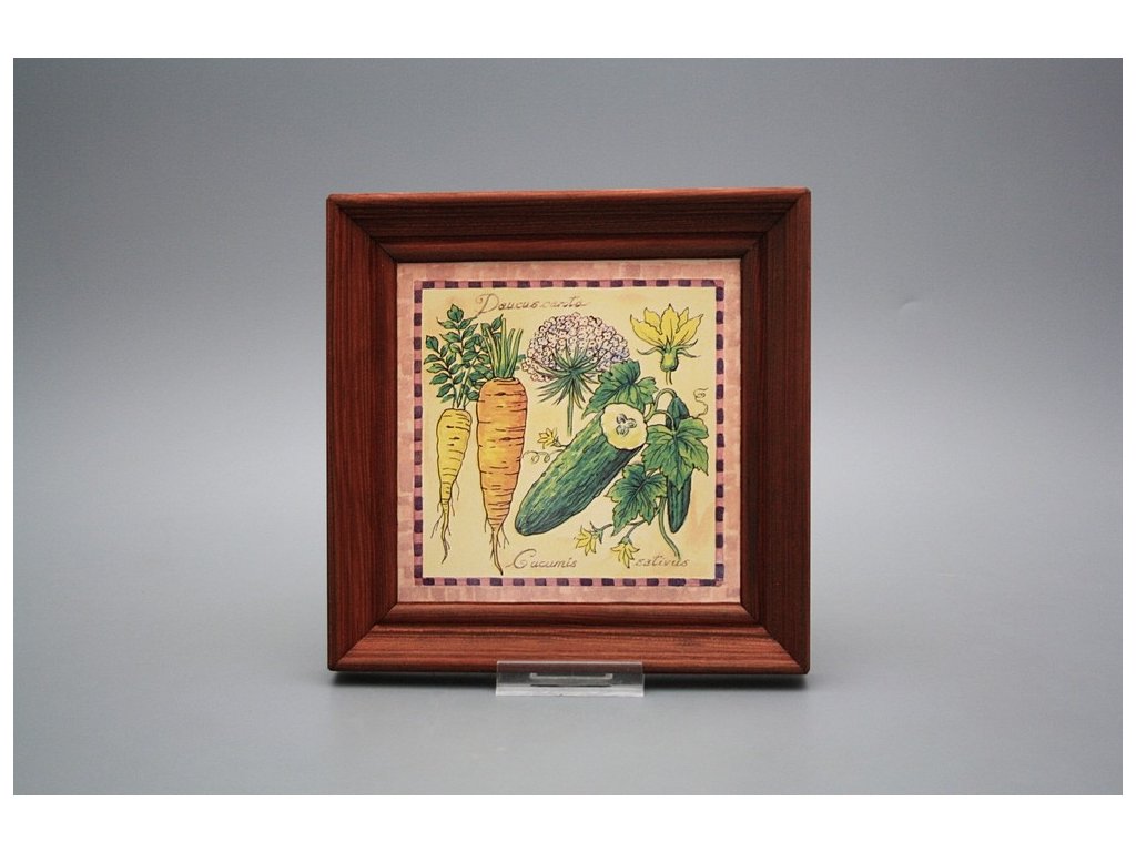 Keramisches Bild zum Aufhängen mit Holzrahmen, Temperatur beim Ausbrennen des Motivs in Höhe von 820°C, abriebfestes, waschbares Dekor.