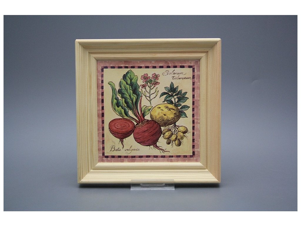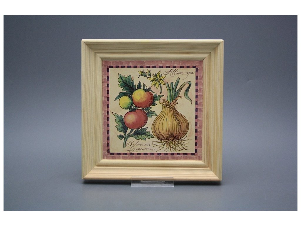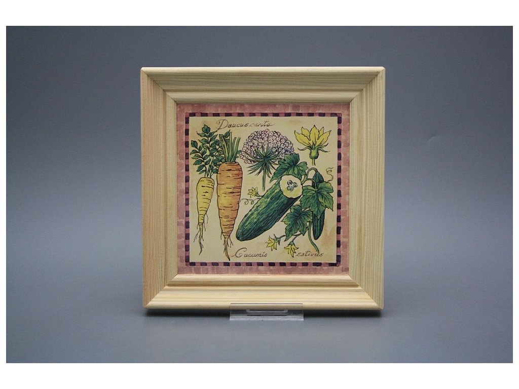 Keramisches Bild zum Aufhängen mit Holzrahmen, Temperatur beim Ausbrennen des Motivs in Höhe von 820°C, abriebfestes, waschbares Dekor.